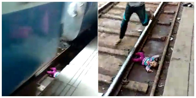 نجت طفلة رضيعة في محطة هندية إثر سقوطها على سكة حديد مرّ قطار عليها، في حادثة تم تداولها، على نطاق واسع على مواقع التواصل الاجتماعي.