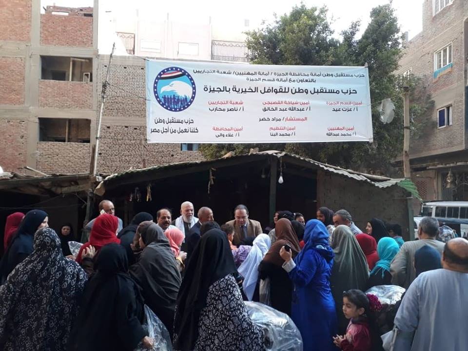 ومن خلال شعبة التجاريين بامانة المهنيين بحزب مستقبل وطن بالجيزة بحضور ناصر محارب المفكر الإقتصادى وبالتعاون مع أمانة حزب مستقبل وطن بقسم الجيزة برئاسة الاستاذ عزت عيد أمين الحزب بالقسم والنائب بمجلس الشعب سابقا ، بعمل قافلة خيرية وتوزيع كمية من البطاطين فى شياخة القصبجى بقسم الجيزة على الاهالى ،