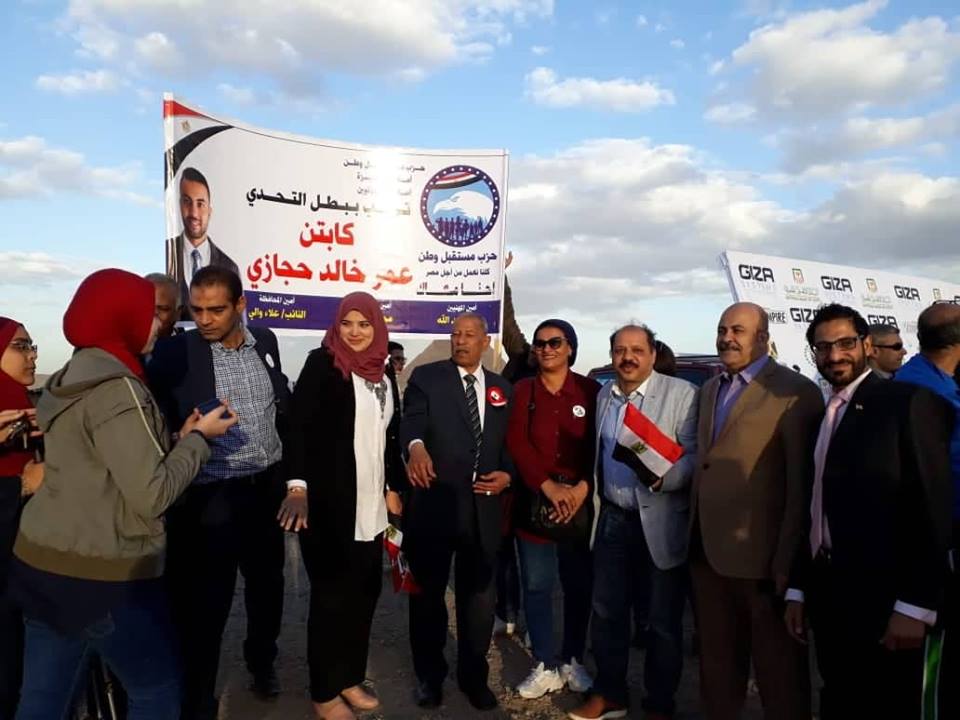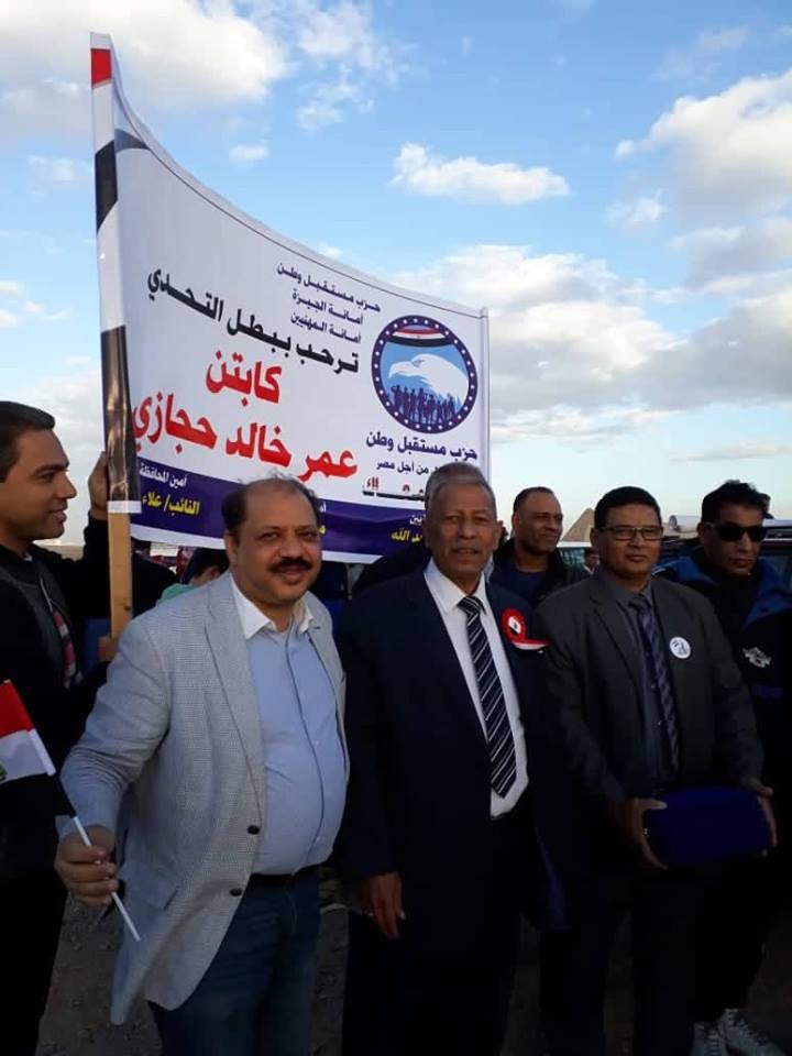 احتفل اليوم حزب مستقبل وطن (امانه المهنيين) بوصول كابتن عمر حجازي الي الأهرامات علي دراجته من طابا الي الأهرامات متحدي الاعاقه لتنشيط السياحه وكان في استقباله محافظ ألجيزه ووزيرالشباب والرياضه والنائبه مني منير امانه المهنيين والإعلام والصحافة كان شئ جميل ونفرح والحزب شارك بقوه(تحت قياده النائب علاء والي وأمين التنظيم /محمدالبنا .