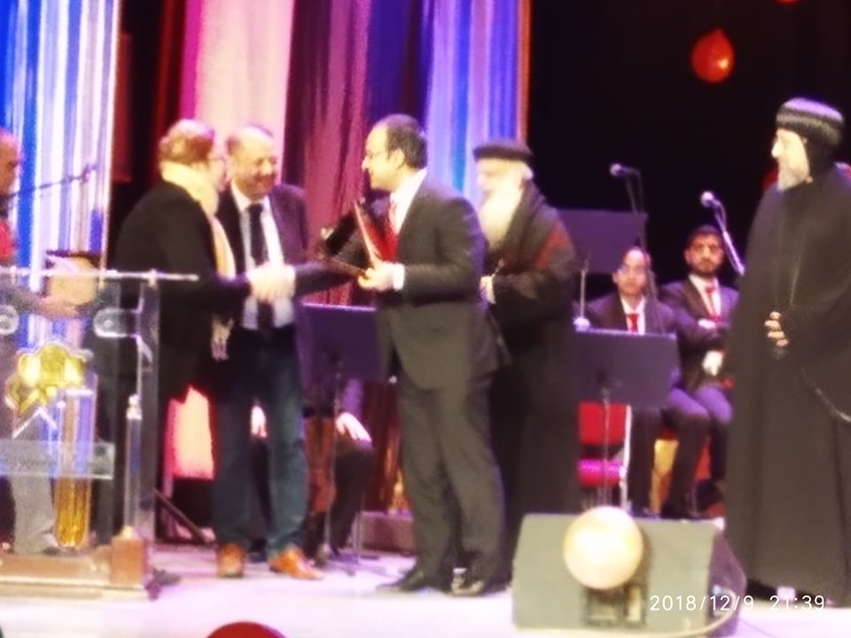 + رجل العطاء والخير ومساعدة الفقراء ومؤسس مستشفى السلام الدكتور الانسان فتحى اسكندر ,و تسلنت الجائزة زوجته دكتورة رينية بحضور ابنته دكتورة ايمان .