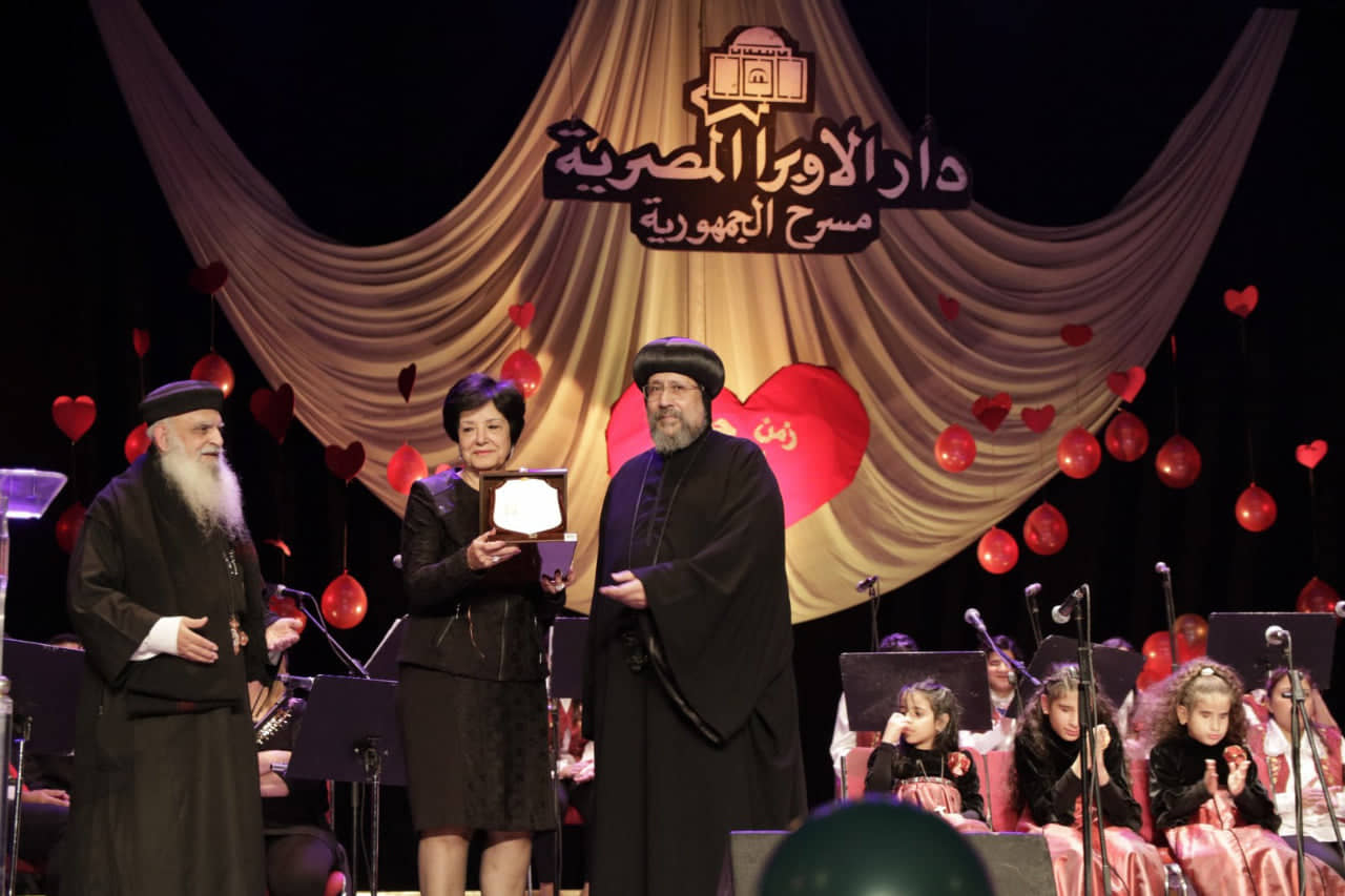 قدم الفريق اغانى وطنية لمصر الام والوطن وعزف الفريق اجمل الاغانى باوركسترا كامل بقيادة دكتورة هناء طانيوس وباشراف تاسونى سهير القمص بولس الذى قادت الفريق باغنيها الجميله وبتقديمها للحفل المبدع وكلماتها البسيطة التى تلمس القلب فى زمن الحب الجميل وهذا الفريق باشراف القمص بولس سمعان كاهن كنيسة العذراء والانبا ابرام فيصل ويشرف على الفريق نيافة الحبر الجليل الانبا يوليوس اسقف مصر القديمة وتحت رعاية قداسة البابا تاوضروس الثانى بابا الاسكندرية .