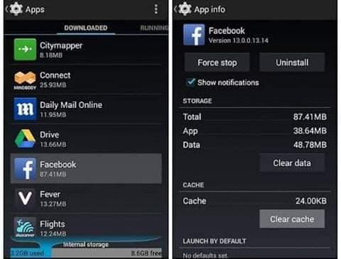 عموماً حضرتك تبص الأول على تحديث للتطبيق فى Google Play Store لو مفيش تحديث يبقى هتلجأ لإفراغ الـ Cashe عن طريق تطبيق الخطوات الآتية [ Settings/ Applications / Facebook / Clear Cahe ]