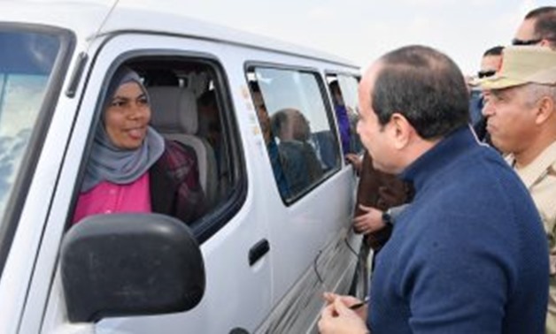 President Abdel Fatah al-Sisi met with a female minibus driver, Nehmedo Saeed on Thursday, during his tour of Egypt’s New Administrative Capital.
