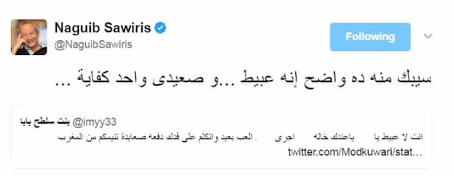 وقال ” سيبك منه ده واضح انه عبيط….وصعيدي واحد كفاية..”.