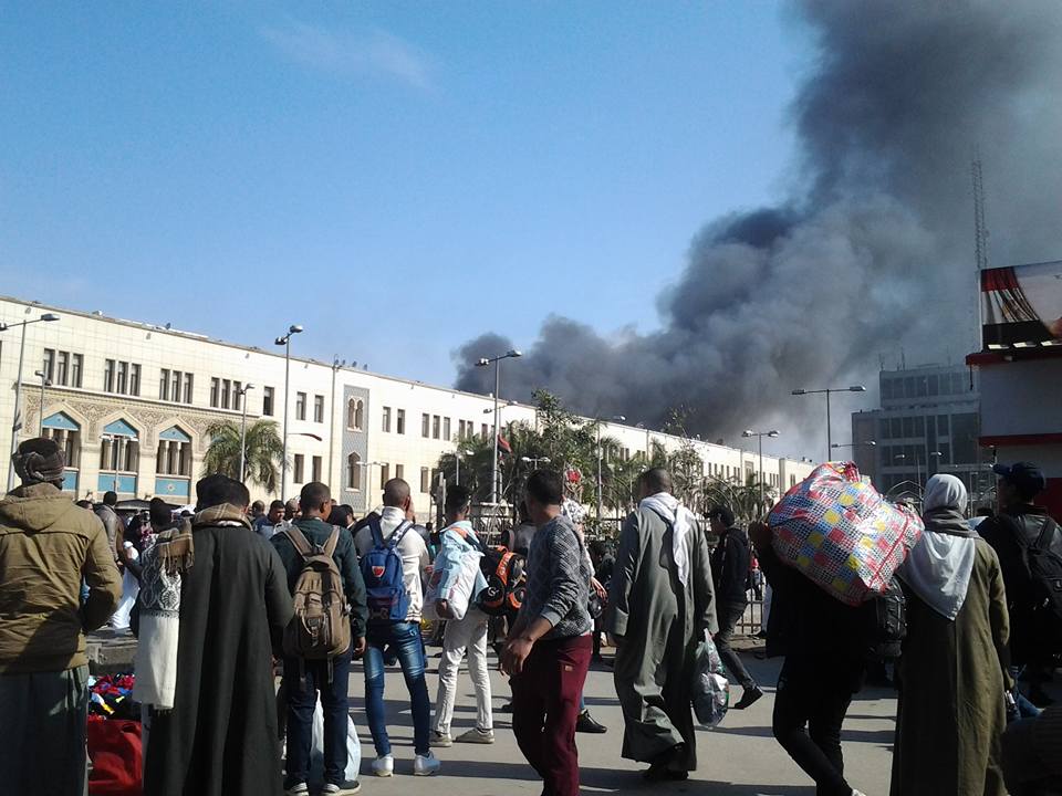 وقع حريق هائل بمحطة مصر بميدان رمسيس بسبب اصطدام قطار برصيف وأنباء عن وقوع ضحايا ومصابين