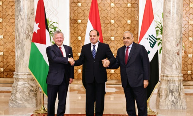 This afternoon, the Presidential Palace hosted a trilateral summit between President Abdel Fattah al-Sisi, King Abdullah II of Jordan and the Prime Minister of Iraq Adel Abdul-Mahdi.