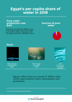 Although Egypt’s per capita share of water declined to 570 m3 per year in 2018, the per capita average of produced pure water rose 8.6 percent in 2018, said the Central Agency for Public Mobilization and Statistics (CAPMAS) on Monday.