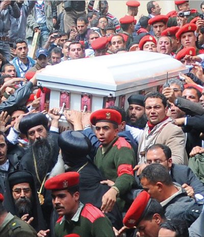 وبعد أحداث ماسبيرو قال البابا شنودة في عظته الأسبوعية “أعزيكم في استشهاد أبنائنا الذين قتلوا في ماسبيرو من هؤلاء الأبناء العزل الذين لم يحملوا سلاحًا مطلقًا، حسب تعليم دينهم الذي يمنعهم من العنف، ولو كان معهم سلاح لظهر أثناء المسيرة من شبرا لماسبيرو، 24 قتيلا وأكثر من 300 مصاب وأن دم هؤلاء “دمهم ليس رخيصا علينا” ومن محبة الله لهم سمح أن يسلكوا للسماء قبلنا.