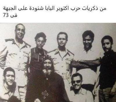 اثناء حرب اكتوبر1973م، زار البابا شنودة الثالث الجبهة، وألتقى بقادة القوات المسلحة والضباط مرتين، الأولى يوم”14 إبريل عام 1972، والثانية يوم 4 فبراير عام 1973″، وعندما نشبت الحرب بين مصر وإسرائيل قامت الكنيسة بقيادة البابا بدور وطنى وتاريخى، لتقدم الدعم المعنوى والسياسى للوطن أثناء الحرب، من خلال توفير الأدوية والمساعدات الإنسانية، ودعم المجهود الحربى،وزيارة الجنود الجرحى فى المستشفيات .