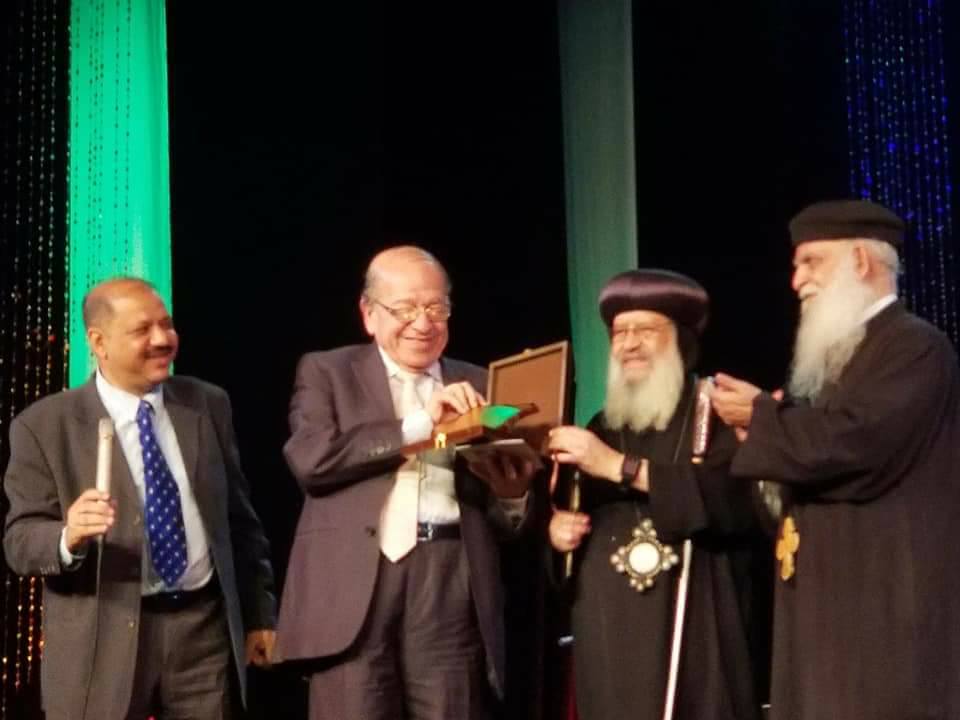 - مع رئيس جامعة عين شمس اثناء تكريمة كعضو عن نادى ليونز ايمدج