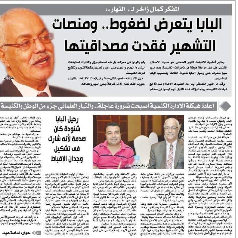 يعتبر اغلبية الاقباط التيار العلماني هو صوت الاصلاح الكنسي في ظل مرحلة فارقة في تحولات الكنيسة
