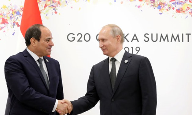 President Abdel Fatah al-Sisi met with his Russian Counterpart Vladimir Putin on the sidelines of the G20 summit in Osaka, Japan on Saturday, where he assured Egypt’s aspiration to deepen bilateral relations on different levels.