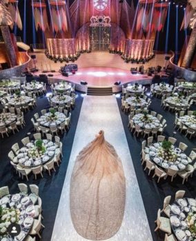 العرس “المثير للجدل”، عُقد في الـSeaSide Arena بالعاصمة اللبنانية بيروت، وسط حضور عدد كبير من الإعلاميين وخبراء الموضة والفنانين، أبرزهم راغب علامة.