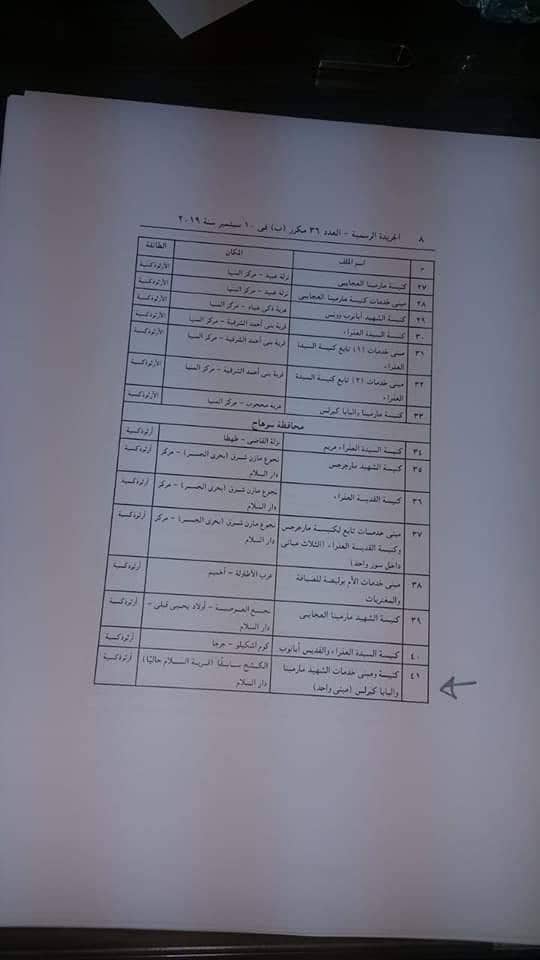 نشرت الجريدة الرسمية قراراً جمهورياً ببناء عدد من الكنائس الجديدة وترميم عدد من المبانى الخدمية داخل عدد من الكنائس لكلا من محافظة المنيا وسوهاج