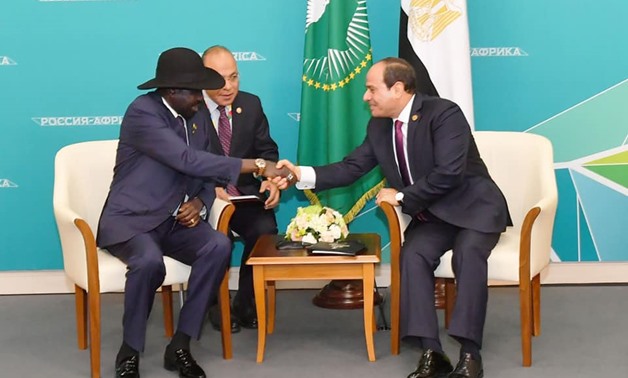 South Sudan’s President Salva Kiir on Wednesday praised Egypt’s efforts to back stability in the region and in South Sudan, during his meeting with President Abdel Fattah Al-Sisi, on the sidelines of the Russia-Africa Forum in Sochi, Russia, the Egyptian presidency said in a statement.