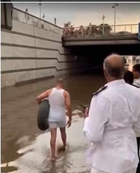 تداولت مواقع التواصل الاجتماعي  صورة لرجل يدخل الي نفق العروبة الغارق بمياه الامطار حاملا “طوق” حيث تبين انه احد المارة وكان يحاول انقاذ شاب علق داخل النفق.