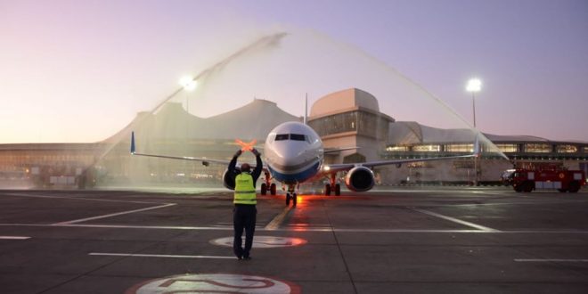وبهذه المناسبة، استقبلت الطائرة بتقليد رش المياه، هذا وقام فريق من العلاقات العامة بالمطار بتقديم الورود والهدايا إلي الركاب والتقاط الصور التذكارية معهم وذلك مواكبه مع الاحتفالات بأعياد الكريسماس ورأس السنة الجديدة.