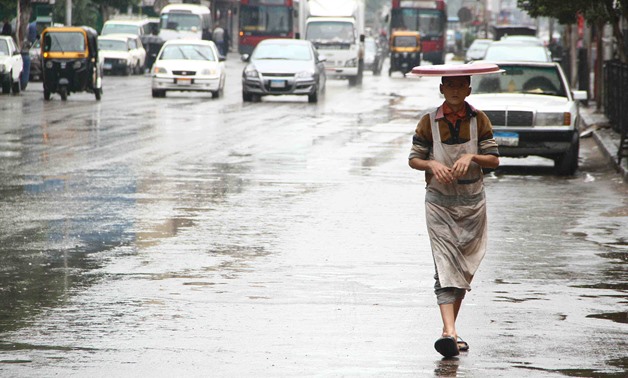 A child walking under the rain in Cairo - Ashraf Fawzy/Egypt Today