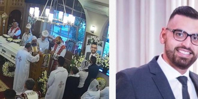 زفت الكنيسة القبطية باستراليا القداس الالهى وصلاة الجنازة جثمان عريس السماء الشماس بيشوى القمص أنطونيوس جرجس فى ملبورن بكنيسة القديس الأنبا أثناسيوس فى حى دونفال والذى فاضت روحة الى السماء صباح الاحد الماضى الموافق ٥ يناير لتحتفل مع الملائكة والقديسين افراح ميلاد يسوع المسيح له المجد , وقد ترأس الصلوات الحبر الجليل الانبا دانيال أسقف ورئيس دير الانبا شنودة رئيس المتوحدين بولاية نيو ساوث ويلز بحضور كهنة ورهبان مدينة ملبورن , وقد نقل الانبا دانيال تعزيات قداسة البابا تواضروس الثانى بابا الاسكندرية وبطريارك الكرازة المرقسية , بعض اساقفة المجمع المقدس , كهنة ورهبان الكنيسة وذلك اثناء عظته التى تحدث فيها من رسالة بولس الرسول الى اهل رومية ١٤ : ٨ ( لاننا ان عشنا فللرب نعيش , وان متنا فللرب نموت , فان عشنا وان متنا فللرب نحن ) , وفى نهاية صلاة الجنازة قدم والد عريس السماء القمص أنطونيوس الشكر لقداسة البابا تواضروس الثانى والآباء الاساقفة , كهنة , شعب , خدام وشمامسة الكنيسة على تعزياتهم كذلك الانبا دانيال على حضوره خصيصاً من مدينة سيدنى منذ الأربعاء الماضى ٨ يناير لتقديم الدعم والتعازي وقيادة صلوات الجنازة , مراسم الدفن وايضاً صلاة الثالث .