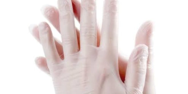 1-قفازات المطاط الطبيعى التي لا تحتوي على البودرة.