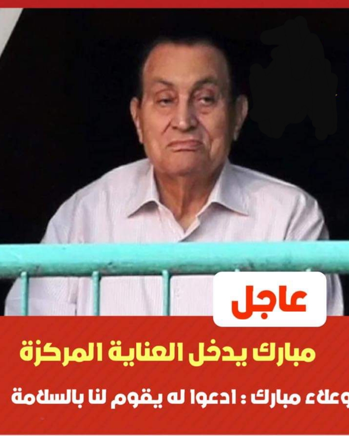 كشف علاء مبارك، نجل الرئيس الأسبق حسني مبارك، عن حالة والده الرئيس الأسبق حسني مبارك ونشر عبر موقع “تويتر” ردا على أحد المتابعين أنه يتواجد حاليا داخل غرفة العناية المركزة بأحد المستشفيات.