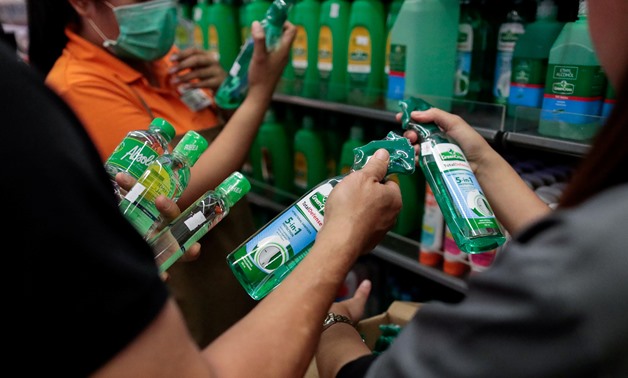 People hoard bottles of alcohol after the Philippine government confirmed the first case of the new coronavirus in the country, in Makati City, Metro Manila, Philippines, January 30, 2020. REUTERS/Eloisa Lopez