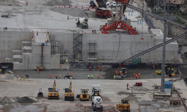 Workers and machinery are seen at Ethiopia's Grand Renaissance Dam as it undergoes construction on the river Nile in Guba Woreda, Benishangul Gumuz Region, Ethiopia September 26, 2019. Picture taken September 26, 2019. REUTERS/Tiksa Negeri