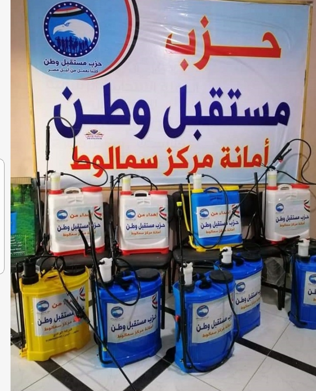 قامت أمانة الحزب بمحافظة المنيا، تحت رعاية النائب عمرو غلاب أمين الحزب بالمحافظة، إطلاق فرق التطهير وحملات التعقيم ، بمركز سمالوط بإشراف محمد نشات امين المركز بتوفير جميع المستلزمات اللازمة لبدء عمليات التطهير والتعقيم وتجهيز فرق عمل من امناء الشباب والعمل الجماهيري وسيارات لبدء المرور من صباح غدا السبت على جميع المجالس القروية بالمركز والبدء فى عمليات التطهير والتعقيم وتوزيع منشورات توعية للمواطنين عن طرق الوقاية من فيروس كورونا.أكد أمين الحزب بالمنيا، على ضرورة تفادي التجمعات الكبيرة؛ كإجراء احترازي للوقاية من فيروس كورونا، واستغلال هذه الفترة في زيادة تعقيم وتطهير كافة الأسطح التي نتعامل معها بشكل يومي.