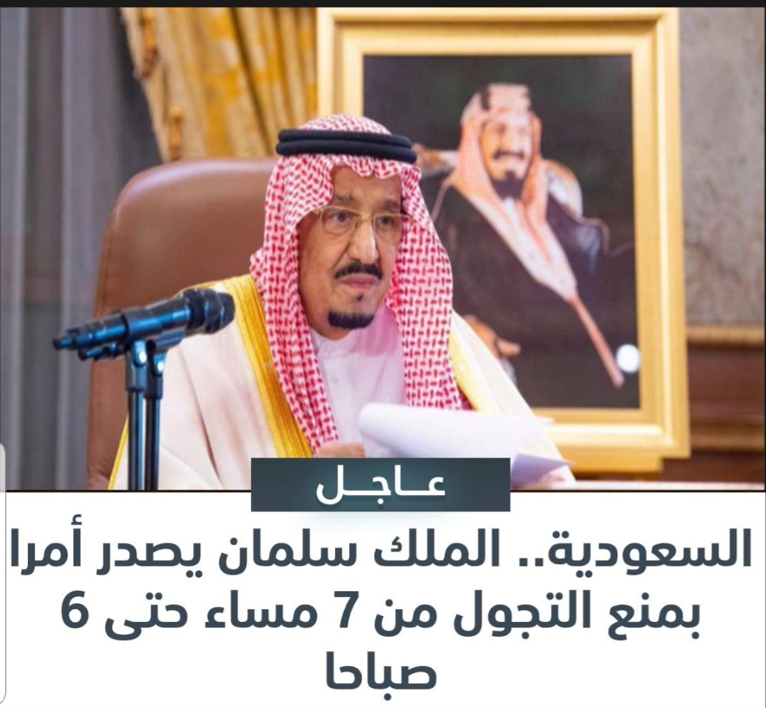 أولاً: فرض حظر التجوال للحد من انتشار فيروس كورونا الجديد ابتداءً من السابعة مساءً وحتى الساعة السادسة صباحاً لمدة ( 21 ) يوماً من مساء الأثنين 28 رجب 1441هـ، الموافق 23 مارس 2020م.