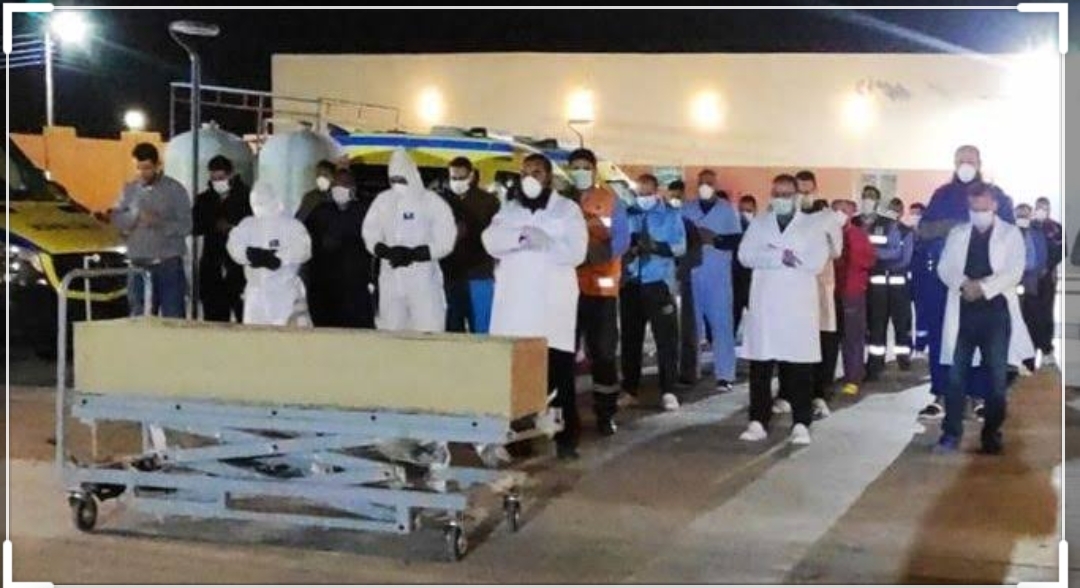 ونشر الدكتور محمد طالب، نائب رئيس مستشفي النجيلة للعزل الصحي في مطروح، صورة لأداء صلاة الجنازة على السيدة، معلقاً عليها:”صلاة الجنازة على أول حالة وفاة بالحجر الصحي بمستشفى النجيلة بمطروح، اللهم اغفر لها وارحمها واجعل مثواها الفردوس الأعلى”.