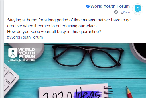 The official Facebook page of the World Youth Forum (WYF) addressed the need for investing the time we spend at home due to the precautionary measures against coronavirus in creativity to entertain ourselves.