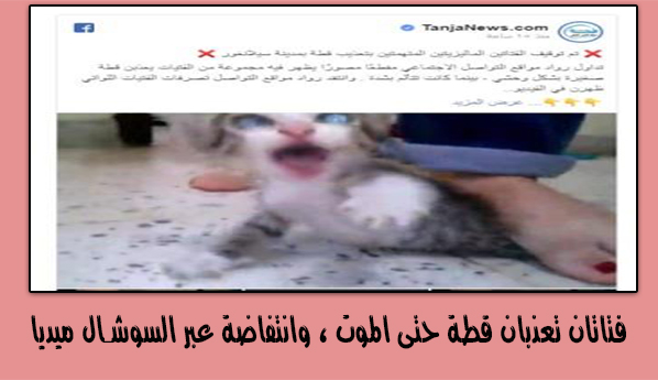 توحش البعض من البشر أمر لافت في وحشية الجرائم التي تشهدها الساحة اليوم ، تساوى في هذا العنف الشاذ الشباب من الذكور و الإناث ، وحتى في التعامل مع الحيوان ، هذا ما صوره لنا مقطع فيديو متداول أثار سخط رواد السوشال ميديا ، و استياء المشاهر .. حيث تفاعل عدد من المشاهير في مصر مع فيديو تم تداوله بشكل واسع على منصات السيوشيال ميديا حول العالم، لتعذيب قطة على يد عدد من الفتيات.ففي الفيديو، تظهر فتاتان يقمان بتعذيب قطة صغيرة بعد ربطها بخيط والوقف عليها، الأمر الذي أدى إلى وفاتها.