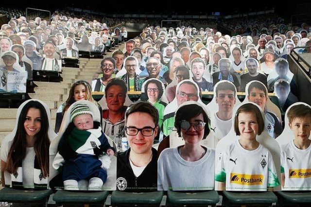 استعدادا لعودة الدوري الألماني غدا السبت :صور ومجسمات كرتونية لجماهير حقيقة تزين جنبات الملاعب لتعويض غياب الجمهور