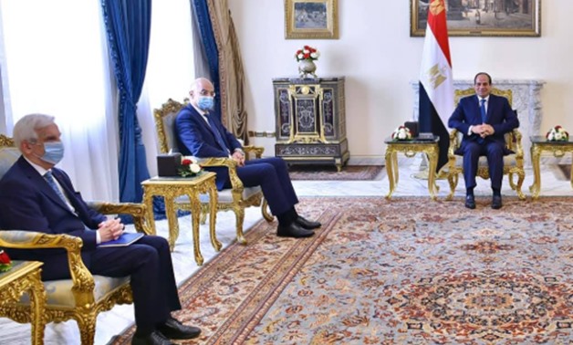 Egyptian President Abdel Fattah El-Sisi on Thursday received the Greek foreign minister in Cairo and affirmed that Egypt’s efforts in the Libyan issue aim to restore the pillars of the Libyan state and fill the power vacuum which caused terrorist groups to exist.