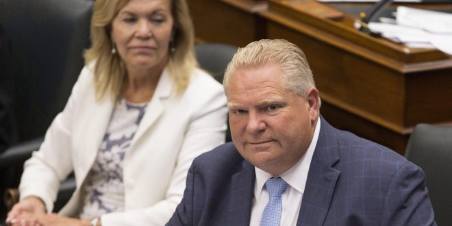 اليوم وفي المؤتمر الصحفي اليومي الذي يعقده الآن من أمام برلمان اونتاريو.