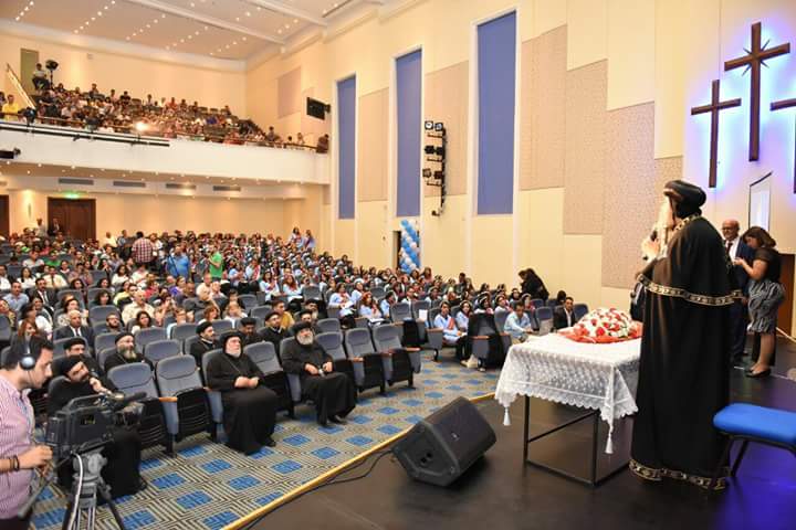 قداسة البابا يتوسط الدفعة الجديدة من خريجي مركز فيرينا للتمريض والتي قام قداسته بتسليم أعضاءها شهادات تخرجهم اليوم.
