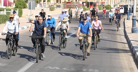 خالد العنانى يوثق مغامرته بقيادة الدراجات الهوائية مع 30 سفيرا بشرم الشيخ “صور”
