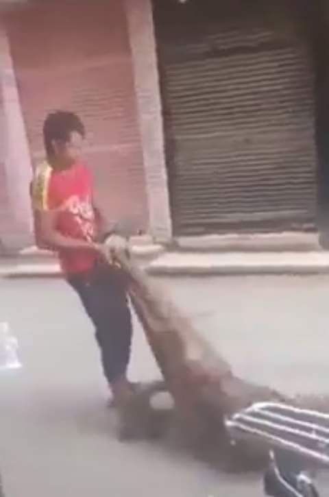 وظهر في الفيديو الذي تداوله رواد السوشيال ميديا، شاب يجر شابا من قدمه ويسحله في الشارع، وسط ضحك من أقرانه وأصدقائه في وسط النهار بأحد الشوارع، وظل الشاب يجر الرجل من قدمه وهو يحاول الإفلات وظل يتوسل للشاب أن يتركه، إلا أن الشاب لم يعيره أي اهتمام ويظل يجره في الشارع كما ضربه ضربة موجعة في صدره، وسط حالة من الغضب الشديد سادت مستخدمي فيسبوك.