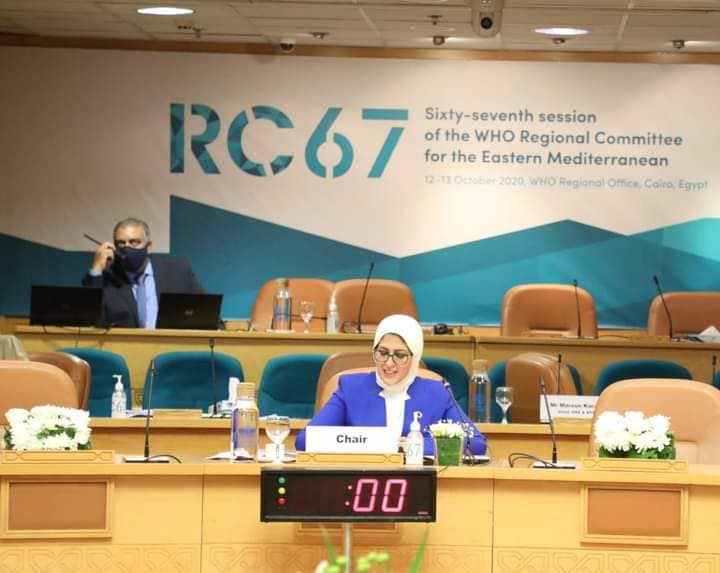 ترأست الدكتورة هالة زايد، وزيرة الصحة والسكان بجمهورية مصر العربية، صباح اليوم الإثنين، اجتماع الدورة ال ٦٧ للجنة الإقليمية لمنظمة الصحة العالمية لإقليم شرق المتوسط، وذلك بعد انتخابها بالإجماع من قبل اللجنة رئيسًا للدورة التي تعقد إلكترونيًا لأول مرة عبر الإنترنت على مدار يومين بمشاركة وزراء الصحة وممثلون رفيعو المستوى من 22 دولة لإقليم شرق المتوسط، لمناقشة بعض القضايا الصحية خاصة جائحة فيروس كورونا المستجد، وذلك بمقر المكتب الإقليمي لمنظمة الصحة العالمية بمصر.