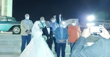 وكان الدكتور محمد عبد العاطى، وزير الموارد المائية والرى، والوفد المرافق له، زاروا أسوان فى جولة مفاجئة شملت مشروع توشكى والسد العالى والمركز الثقافى الأفريقى، والتقط الوزير صوراً تذكارية مع عريس وعروسته خلال تواجدهما بالمركز الثقافى الأفريقى لالتقاط صور “سيشن الفرح”.