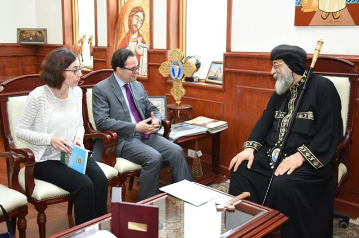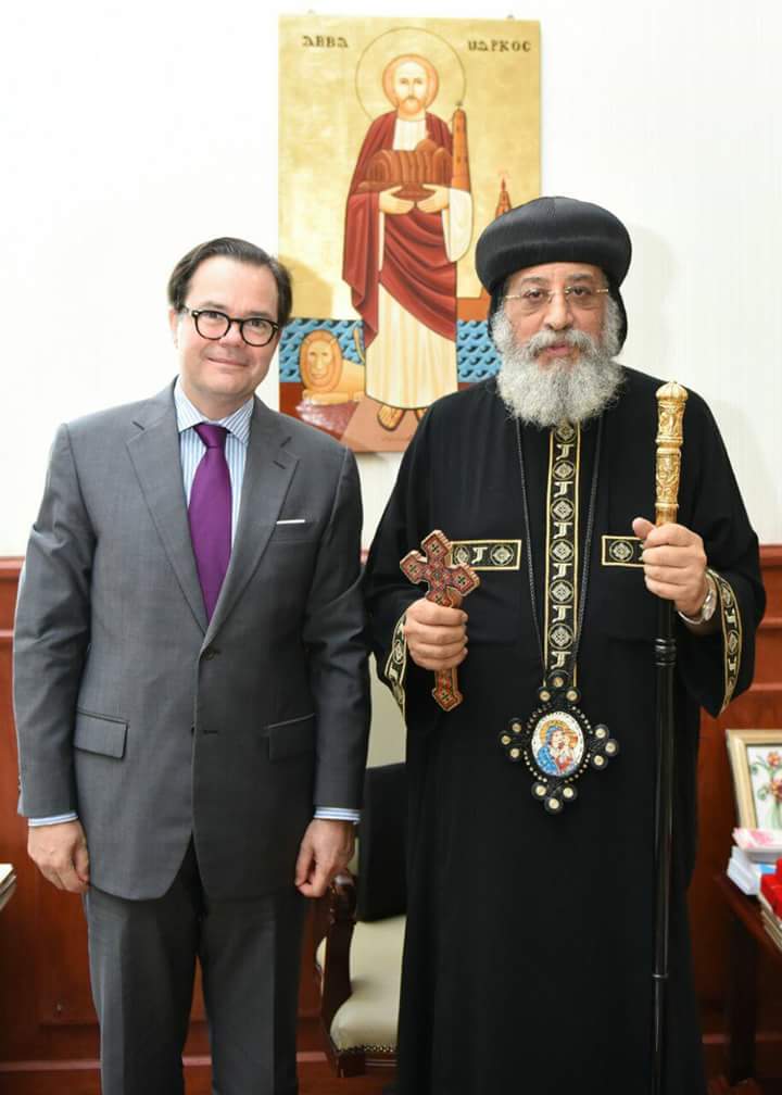استقبل قداسة البابا تواضروس الثاني بالمقر البابوي بالكاتدرائية المرقسية بالعباسية صباح اليوم سفير فرنسا الجديد بالقاهرة ستيفان روماتيه.