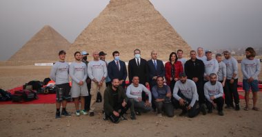 وزراء السياحة والرياضة والطيران يشهدون عرض قفز بالمظلات بسفح الأهرامات