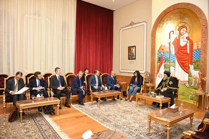 استقبل قداسة البابا تواضروس الثاني اليوم بالمقر البابوي بالكاتدرائية المرقسية بالعباسية وفد من مجلس الشيوخ الإيطالي.