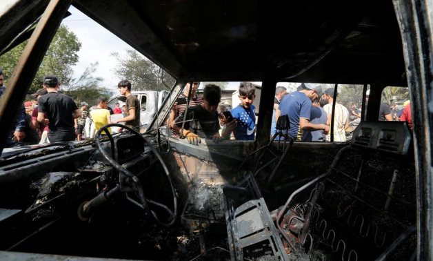 People inspect the site of a car bomb attack in Sadr City district of Baghdad, Iraq April 15, 2021 - Reuters