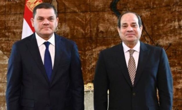 FILE - Egyptian President Abdel Fattah El Sisi receives new Libyan Prime Minister Abdulhamid Dbeibeh in February in Cairo - press photo