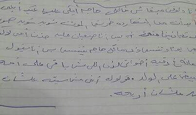 فى اصعب المشاهد يقف القلب متصلب والشفاه عاجزه عن التعبير فى هذا المشهد الأليم وسط اخر كلمات كتبها هذا الشاب قبل ان ينهى حياته (“أنا دلوقتى مبقاش فاضلى حاجة أبكى عليها غير ابنى، أنا بدأت من النهاردة طريق الموت شوية شوية وهريح للى تعابنين منى، بس صعبان على حزن أمى لكن هيبقى يومين 3 وهتنسى، زى ما كل حاجة بتتنسى، بس أنا بقول ابنى أمانة فى رقبة أخواتى لان اللى مش باقى على أمه مش هيبقى على الولد، قولوا له أنى مسبتوش عشان حاجة وسبته علشان أريحه)