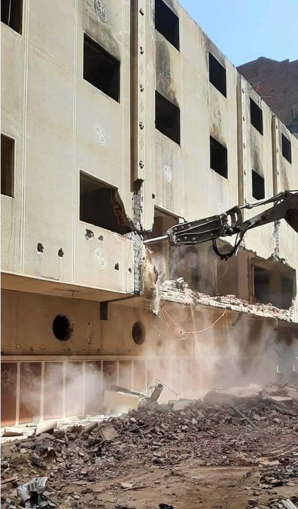 وبناء على ذلك تم صباح امس، البدء في أعمال الإزالة للمبنى بدء بإزالة قبة الكنيسة وانهيار العديد من وجهات متفرقة فى المبنى ومن المتوقع الانتهاء من أعمال الإزالة اليوم .