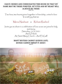 يتقدم المفكر الاقتصادي ورئيس مجلس إدارة موقع المواطنة نيوز ناصر عدلي محارب بالتهنئة لمينا نشأت وريهام راشد بمناسبة زواجهما.