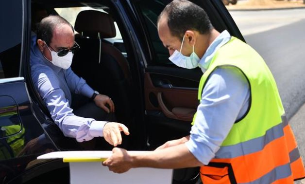 Sisi talks to an employee at one of the construction projects in eastern Cairo in April 2021 - Press photo