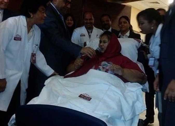 The Egyptian known in the media as the ‘world’s heaviest woman,’ Eman Abdel Aaty, has been placed in a wheelchair for the first time, in Abu Dhabi, since she suffered from a deep vein thrombosis two years ago.
